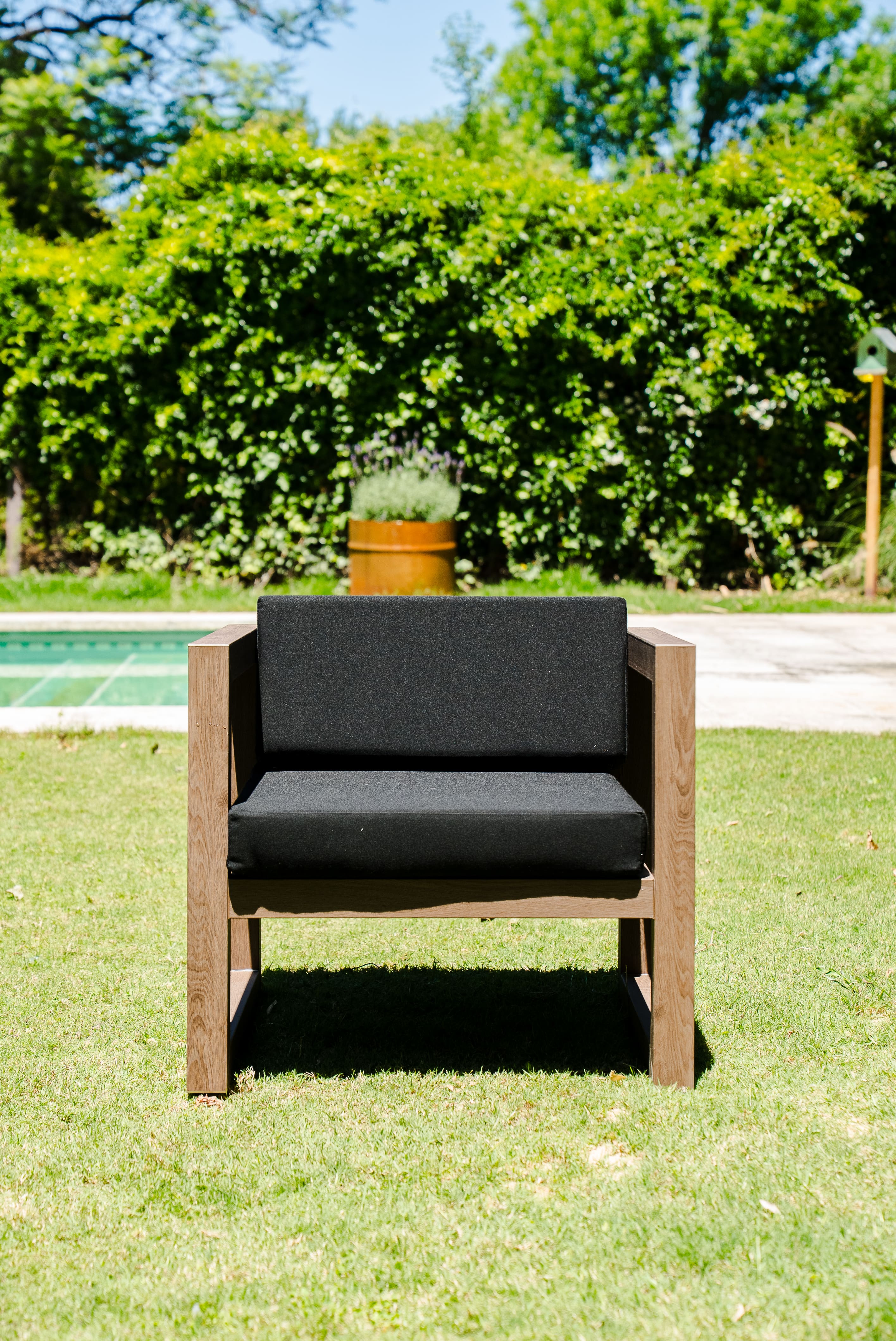 El sillón Clásico representa la esencia del diseño exterior en su forma más pura: líneas rectas, proporciones equilibradas y una estética que nunca pasa de moda. Su estructura firma y su estilo atemporal lo convierten en una pieza versátil, capaz de integrarse en cualquier tipo de espacio, desde galerías amplias hasta rincones más íntimos.